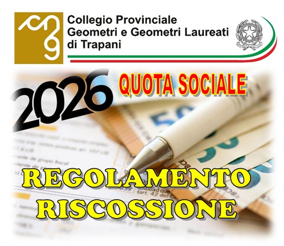 bollettino di c/c postale n. 14266936 intestato "Collegio dei Geometri e Geometri Laureati della Provincia di Trapani" inserendo la causale "quota sociale 2026 con sanzione "