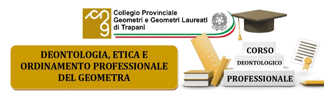 Questo Collegio ha organizzato il corso di “DEONTOLOGIA, ETICA E ORDINAMENTO PROFESSIONALE DEL GEOMETRA”che si terrà in modalità asincrona LUNEDI 20 NOVEMBRE 2023, della durata di 2 ore, dalle ore 15.30 alle ore 17.30.