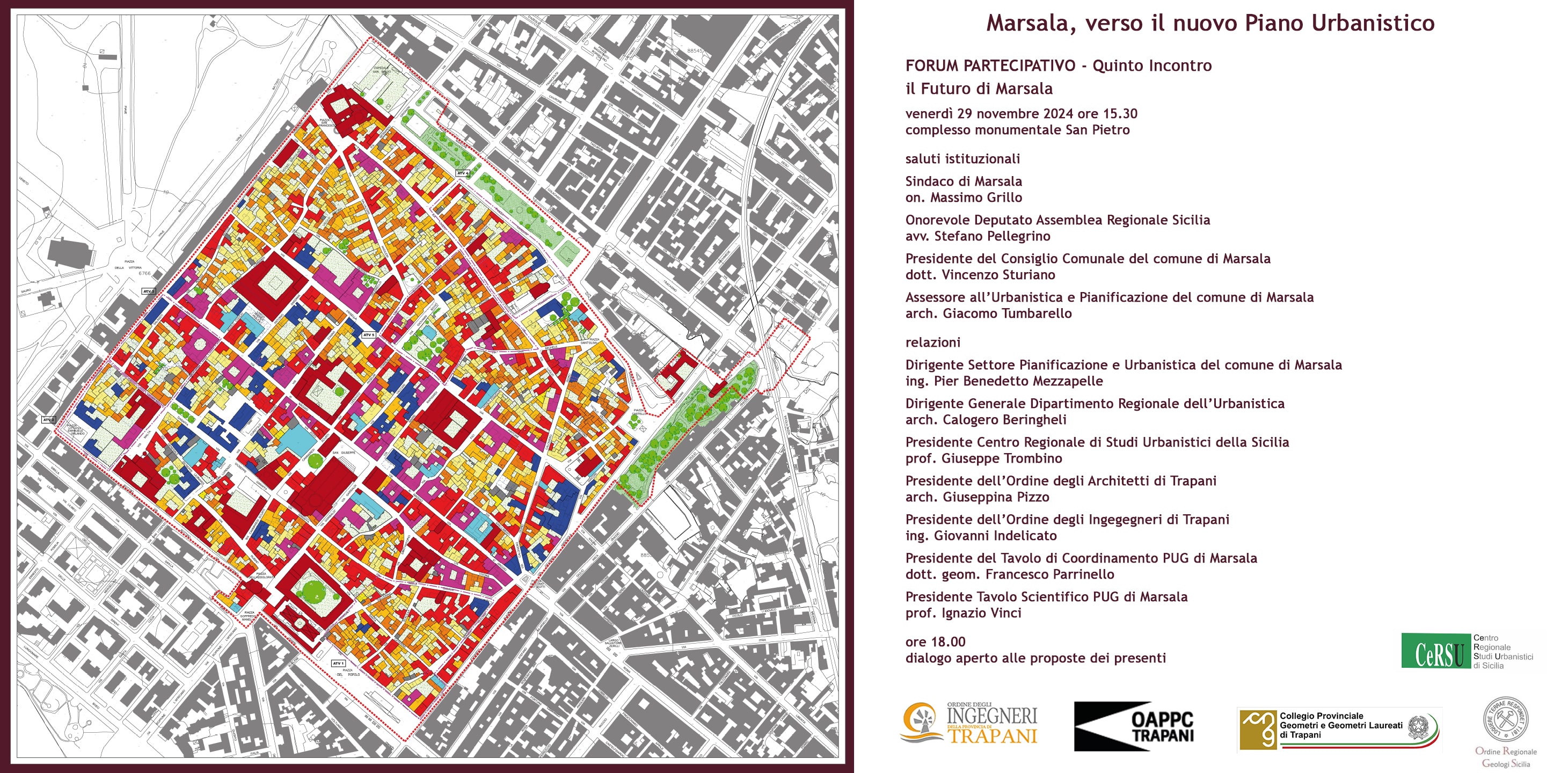 Il dirigente del settore Pianificazione ed Urbanistica del Comune di Marsala, ha organizzato il quinto e ultimo incontro per il convegno dal titolo “Marsala, verso il nuovo Piano Urbanistico” che si terrà venerdì 29 Novembre 2024, presso i locali del Complesso Monumentale di San Pietro, dalle ore 15,00 alle ore 19,00.